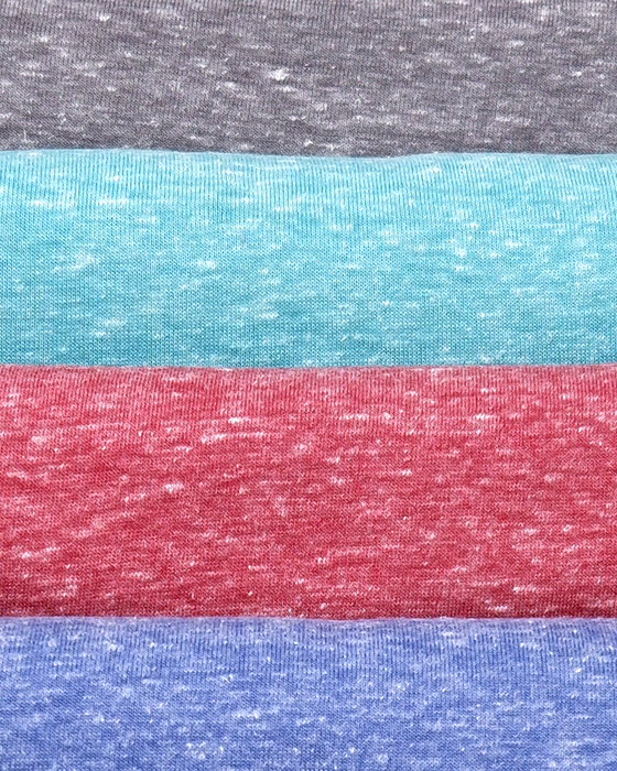 Flakes fabric is a knit material featuring small, scattered colored fibers or “flake-like” specks throughout the surface. These tiny color accents create a unique, playful texture without affecting the softness of the fabric. Lightweight and comfortable, flakes fabric is great for casual tees, everyday wear, and pieces that need a subtle, stylish visual detail.
