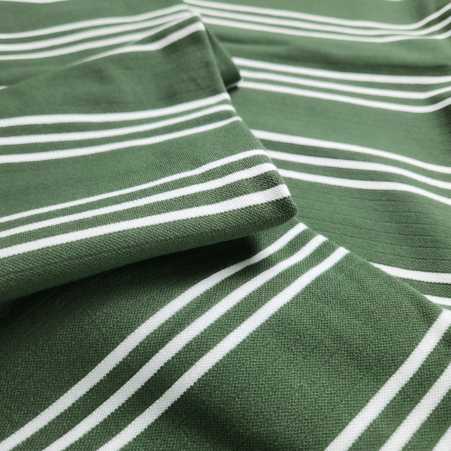 Stripe fabrics incorporate horizontal lines into the knit, offering a clean and classic design. They’re great for everyday wear, school outfits, or playful fashion pieces. The pattern adds visual rhythm without overwhelming the garment. Stripes are timeless, versatile, and easy to wear.