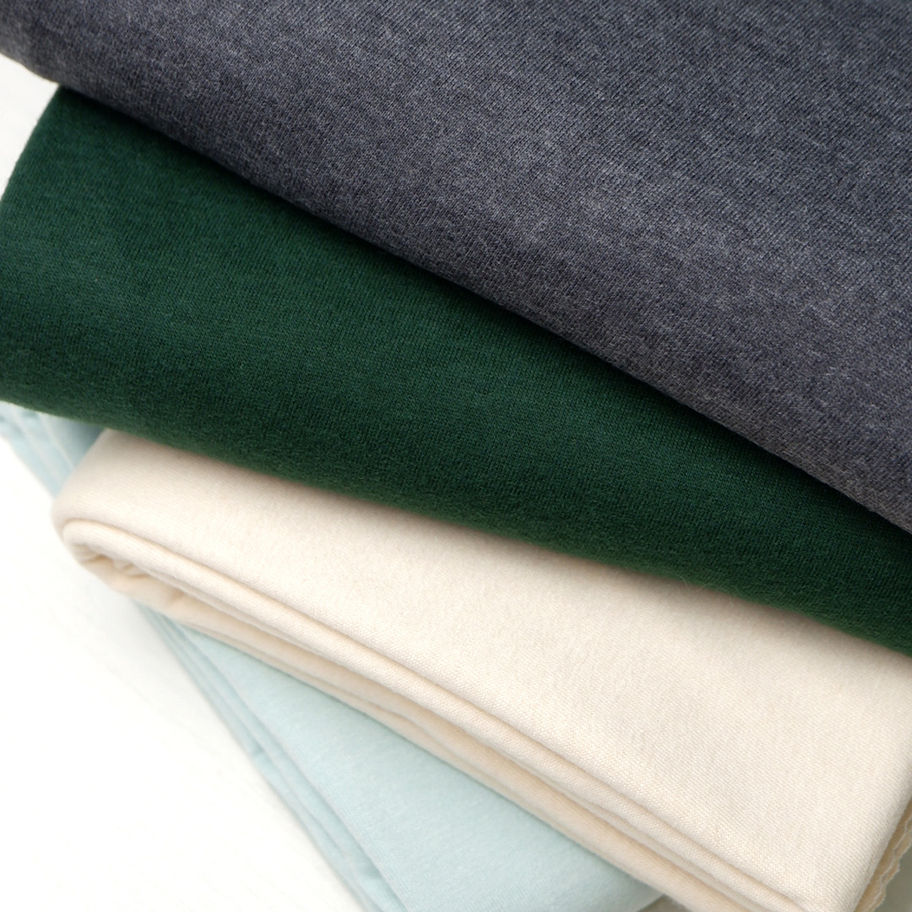 Suede Jersey has the stretch and softness of jersey with a brushed, velvety, suede-like texture for a premium look and feel. It offers a gentle drape and a matte finish that elevates basic silhouettes. Ideal for layering pieces, cozy tops, or refined casualwear. This fabric adds warmth and style without sacrificing comfort.
